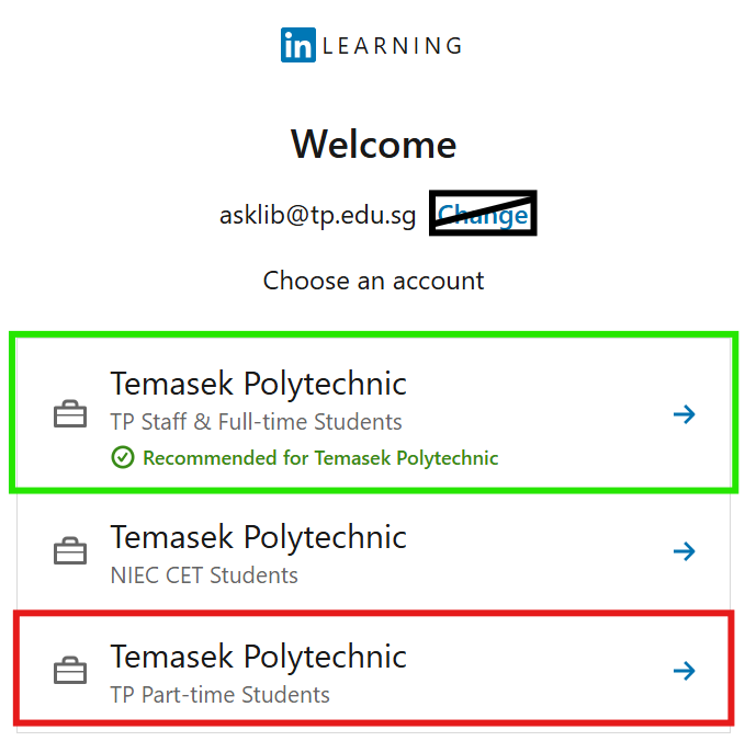If you encounter difficulties logging into LinkedIn Learning, please contact the Library for assistance at asklib@TP.EDU.SG.